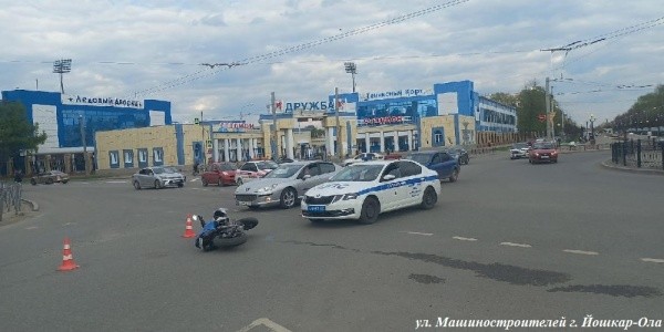 В субботу, 29 апреля, в Йошкар-Оле около дома 22 по улице Машиностроителей 24-летняя автовладелица Volkswagen не уступила дорогу 33-летнему мотоциклисту. Чтобы избежать столкновения, молодой человек резко затормозил. В результате ДТП мужчина получил тяжёлые травмы, и бригада скорой помощи доставила его в медучреждение.