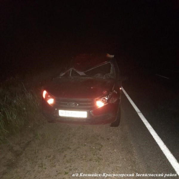 Всего через несколько часов, примерно в 23:00 на втором километре дороги «Йошкар-Ола – Красногорский» произошла другая авария. 37-летний водитель Лады Гранты совершил наезд на внезапно выбежавшего лося. Столкновение произошло в зоне действия знака «Дикие животные». В итоге травмы получила 36-летняя пассажирка авто.