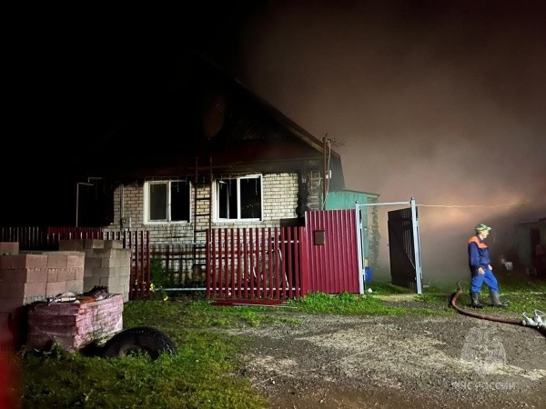 На территории частного хозяйства загорелся жилой дом. На момент возгорания в строении находились супруга хозяина, его дочь и внучка.