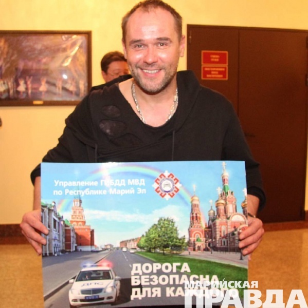 Звезда театра и кино Максим Аверин вместе с участниками знаменитого балета Аллы Духовой «Todes» и художественным руководителем Марийского государственного театра оперы и балета имени Эрика Сапаева Константином Ивановым поддержали фотопроект Госавтоинспекции Марий Эл «Дорога безопасна для каждого», сфотографировавшись с плакатом.