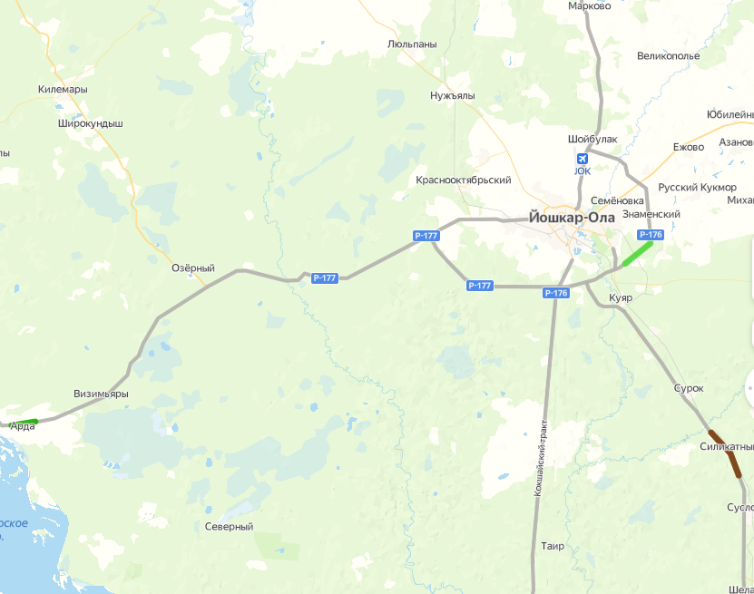 Осторожнее следует быть на участке автодороги Йошкар-Ола – Зеленодольск км 33+550 – км 40+200, пролегающем через поселок Силикатный. Здесь тоже возможны ограничения скорости.