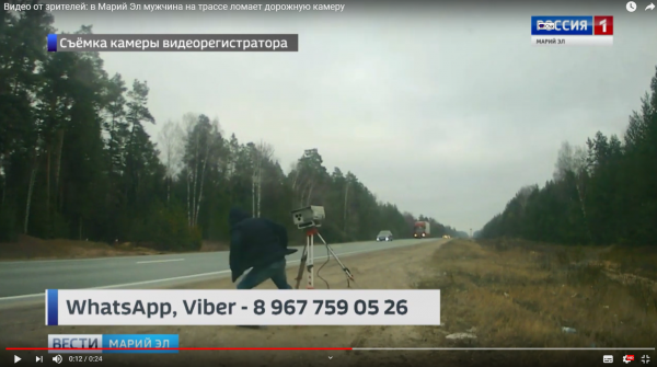 Видео с порчей дорожной камеры показали журналисты ГТРК «Марий Эл». Эпизод нападения им прислал зритель. На картинке видно, как мужчина тремя ударами ноги выводит из строя опору комплекса. Тут же на него набрасывается второй мужчина, но через секунду оказывается на земле.