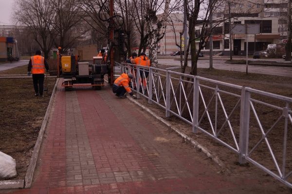 В текущем году работы продолжаются. Так, уже сегодня в Йошкар-Оле устанавливаются новые пешеходные ограждения на ул. Красноармейской.