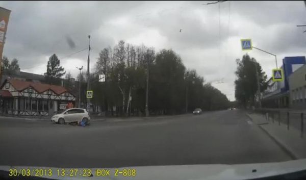 Вчера в Йошкар-Оле в ДТП пострадали молодая женщина и ребенок, которых сбил водитель на машине марки Volkswagen. Момент ДТП запечатлел видеорегистратор одного из автомобилей.