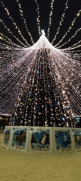 На макушке елки установлена объемная восьмиконечная звезда «Роза ветров», состоящая из тысячи светодиодов. Вокруг ели энергетики ведущей электросетевой компании республики закрепили красочные баннеры с любимыми сюжетами из новогодних детских сказок с логотипом компании «Россети». Благодаря новогодней елке и праздничной иллюминации центральная площадь столицы Марий Эл стала местом притяжения взрослых и детей и создает ощущение долгожданного праздника.