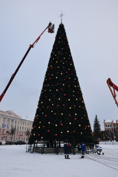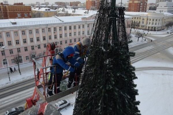 Энергетики разместили «светящиеся нити» с эффектом мерцания общей длиной более 5 тысяч метров и светодиодный шатер, который освещает площадь теплым белым светом, длина его гирлянды – более трех тысяч метров.