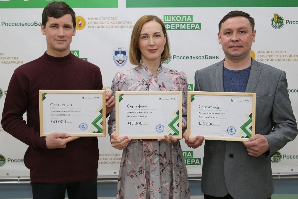Грантополучателям из «Школы фермера» в Марий Эл Алексею Иванову, Елене Михеевой и Владиславу Николаеву финансовую поддержку окажет партнер РСХБ – ООО «Птицефабрика Акашевская».