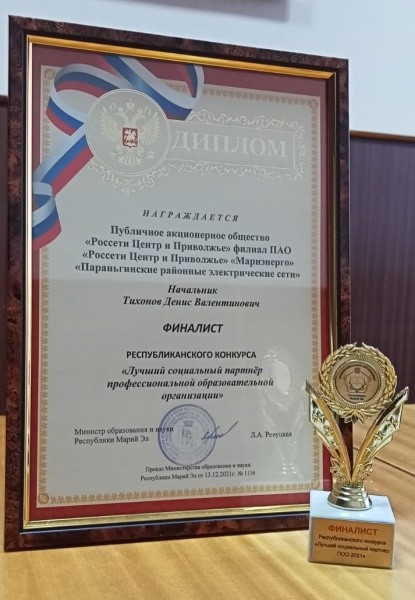 В номинации «Лучший наставник» по результатам экспертизы конкурсных материалов и решению комиссии Параньгинский район электрических сетей Филиала ПАО «Россети Центр и Приволжье» – «Мариэнерго» стал финалистом республиканского конкурса «Лучший социальный партнер профессиональной образовательной организации-2021».
