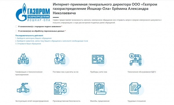 На сайтах «Газпром межрегионгаз Йошкар-Ола» и «Газпром газораспределение Йошкар-Ола» заработала интернет-приемная генерального директора.