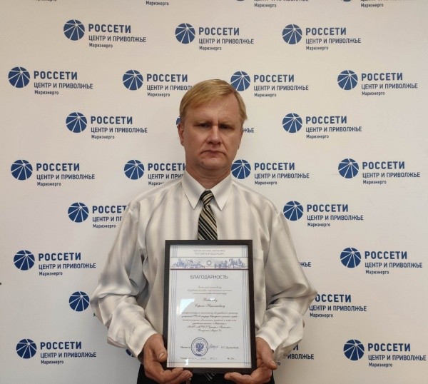 Благодарностью Министерства энергетики Российской Федерации отмечен Сергей Вавилов, электромонтер по техническому обслуживанию и ремонту устройств РЗА 6 разряда Сернурского участка службы релейной защиты, автоматики, измерений и метрологии управления филиала ПАО «Россети Центр и Приволжье» – «Мариэнерго».