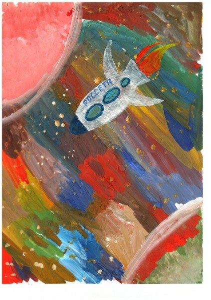 Восьмилетняя старшая сестра Вики – Настя – тоже увлекается творчеством и очень любит рисовать. Она учится во втором классе лицея им. М.В. Ломоносова, занимается спортивно-бальными танцами и учится в музыкальной школе. Ее работа под названием «Покоряем новые горизонты» заняла третье место в возрастной категории от 8 до 10 лет в номинации «Наука и новые технологии в энергетике». На ее рисунке изображен космический корабль, изучающий безграничное пространство космоса.
