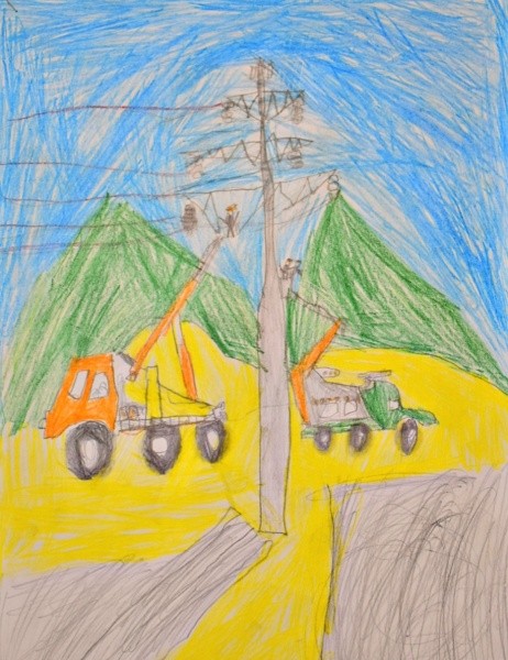 Призовые места определились следующим образом: в возрастной категории участников от 3 до 6 лет в номинации «Есть такая профессия: родину освещать!» первое место занял рисунок шестилетнего Никиты Димитриева, его папа Александр Иванович работает электромонтером на Йошкар-Олинском участке службы подстанций. В возрастной категории от 7 до 10 лет победителем стал рисунок десятилетнего Александра Ворончихина, его папа Валерий Николаевич – мастер оперативно-технологической группы Сернурского РЭС. Среди участников от 11 до 14 лет победу одержала Валерия Ятманова, ей 14 лет, ее папа Александр Евгеньевич – диспетчер участка ОТУ распределительной сетью диспетчерской службы Центра управления сетями.