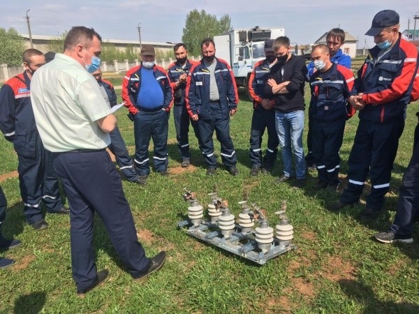 Члены комиссии провели практические занятия на учебно-тренировочных полигонах с рассмотрением вопросов о порядке проведения осмотров и выявления дефектов на разъединителях, трансформаторных подстанциях (ТП 0,4-10 кВ), порядке организации и выполнения аварийно-восстановительных работ на ТП и действий оперативного персонала при выявлении дефектов оборудования при выполнении переключений.