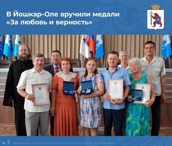 Грамотой, медалью «За любовь и верность», а также памятными подарками в Йошкар-Оле награждены шесть семей:
