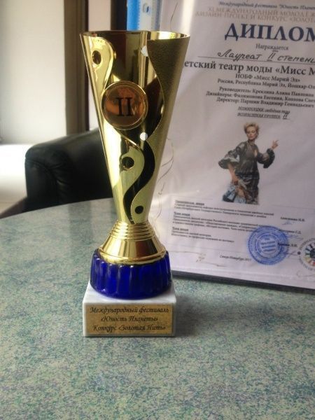 Детский театр моды "Мисс Марий Эл", недавно вернувшийся с фестиваля «Юность планеты», который проходил в Санкт-Петербурге, принял участие еще и в международном молодежном конкурсе «Золотая нить». Маленькие театралы из Йошкар-Олы привезли почетное второе место.