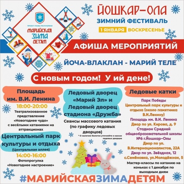 По инициативе Главы республики в Йошкар-Оле проходит проект «Марийская зима детям». Какие мероприятия юные жители Марий Эл могут посетить сегодня?