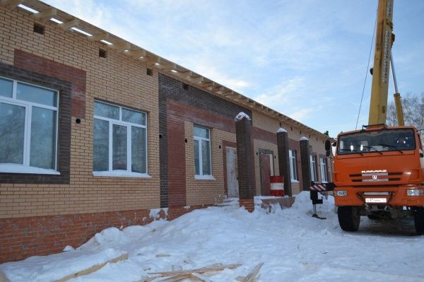К концу прошлого года на объекте выросли стены, рабочие подвели наружные сети канализации и водопровода, сообщается в группе районной газеты «Восход» в социальной сети «ВКонтакте». В январе 2020 года строители приступили к следующему этапу работ. Сейчас работники АО «ПМК-5» занимаются монтажом стропильной системы, осуществляют кровельные работы, началась внутренняя отделка здания, передает издание.