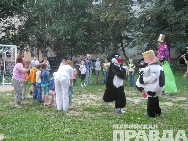 Праздником для детей и взрослых стало открытие детской площадки в Йошкар-Оле по адресу улица Волкова, 164. Совместно с администрацией города и сотрудниками Центрального парка культуры и отдыха здесь было показано целое представление с играми и конкурсами. Вместе с ребятами пели песни и танцевали артисты, переодетые в корову, пингвина и волшебника. Теперь местная детвора имеет в своем распоряжении новые качели, турникет, горку, площадку для игры в футбол.