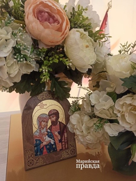 Епископ Волжский и Сернурский Феофан преподнес в дар отделу ЗАГС города Волжска икону Святых Петра и Февронии.