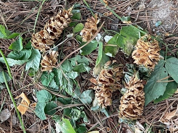 Сотрудники Ботанического сада отметили, что шишек на кедровых соснах хватит всем: и людям, и белкам. Ведь технически организовать сбор нам удаётся только с половины крон, обращённых к дороге, куда подъезжает техника. Все остальные шишки достаются животным и птицам.