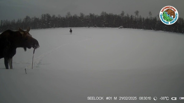 В Марий Эл государственные инспекторы заповедника «Большая Кокшага» поделились кадрами с фотоловушки, запечатлевшими происшествие с участием двух лосей. Животные пересекали реку по зимнему льду, когда беременная самка провалилась в воду.