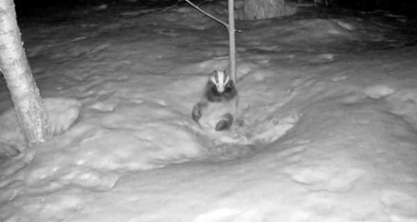 Подкрепившись на прогулке хрустящим, тающим во рту снегом, барсуки вновь скрываются подремать в глубине своего убежища, чтобы набраться сил для будущих ночных вылазок.