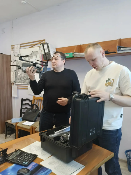 Работники продемонстрировали Сергею применение беспилотных летательных аппаратов (БАС) в лесном хозяйстве, а также дали ему возможность изучить таксационные измерительные инструменты.