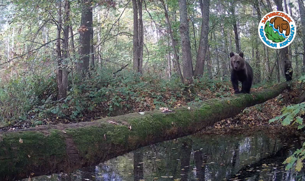 На видео с фотоловушки государственного инспектора в области охраны окружающей среды Альберта Негреску видно, как медведи шагают по широкому бревну. Потеряв одного из детенышей, косматая мама идет на поиски.