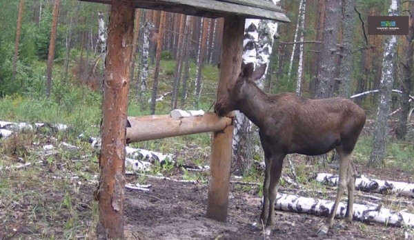 Но этот сохатый приходил на солонец вместе с лосихой несколько месяцев назад, а сейчас он один. Возможно, мать где-то рядом, просто не попадает в фотоловушку. Остаётся только и дальше наблюдать за животными национального парка.