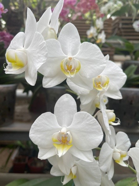 Растения смогли пережить жаркое лето, когда воздух под крышей в оранжерее нагревался до критической температуры, а вся коллекция страдала от солнечных ожогов. Проблем доставили и энтомовредители. Но орхидеи всё-таки были рады большому количеству света и теперь заманивают своей красотой.