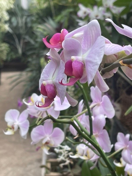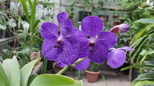 Стеллажи оранжереи просто заставлены пышноцветными красавицами, которые борются за внимание зрителя. И такое происходит уже второй месяц, рассказывают сотрудники сада. Когда пришла зима и даже снег уже лежит, зацвести решили фиолетовая ванда, фаленопсисы и дендробиумы.
