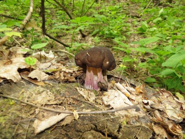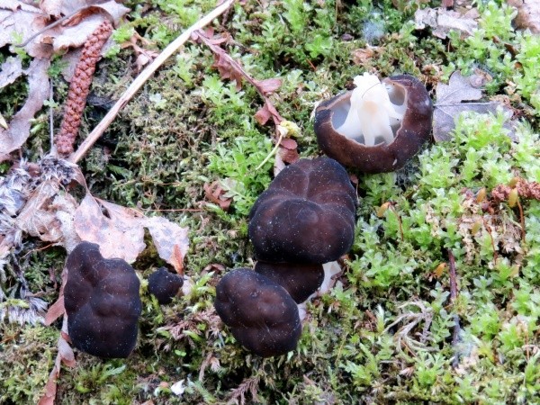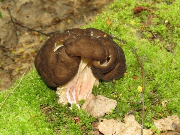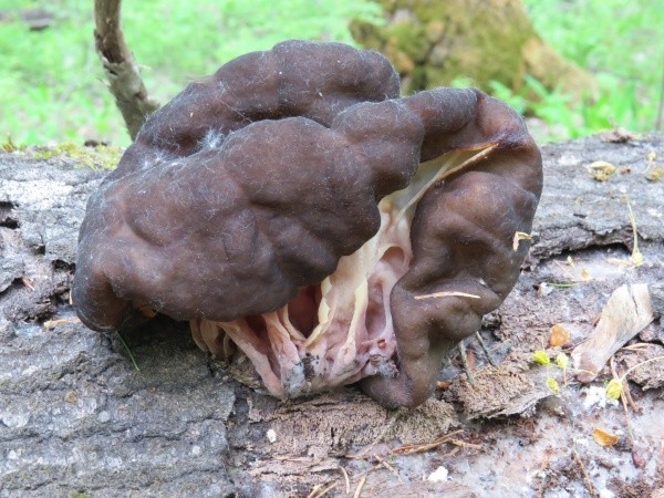 Речь идёт о Строчевнике круглоспоровом (Pseudorhizina sphaerospora (Peck) Pouzar.). Миколог из Татарстана Ким Потапов помог Геннадию Богданову определить данный вид. Молодые экземпляры были обнаружены в начале июня в осиннике липово-кленовом с елью, на замшелых и упавших стволах осины и на земле на территории заповедника «Большая Кокшага».