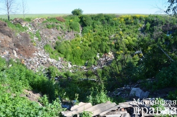 Воронка очень большая, глубокая, почти правильной округлой формы. К большему сожалению, эта природная необычность уже давно превращена в свалку. В принципе сюда вполне можно было возить туристов, но сейчас здесь многолетнее нагромождение мусора разного рода. Причем, судя по всему дрянь продолжают тащить - видны совсем свежие отвалы, хотя теперь в каждой деревне стоят контейнеры для бытовых отходов.