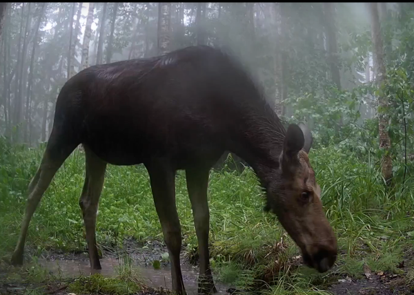 Фотоловушка государственного инспектора в области охраны окружающей среды Михаила Негреску запечатлела момент, когда в дождливый день лось решил подкрепиться. Он грациозно прошелся перед камерой и попил из лужи. И какая удача, что техника смогла не просто снять животное, но и добавить атмосферу с помощью звука! Плювиофилы точно оценят эти моменты.