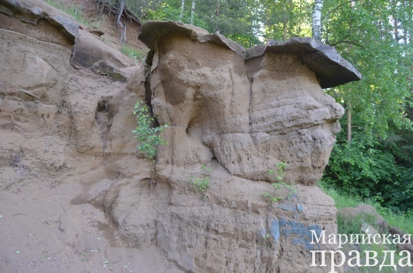 Поскольку я заехал не с той стороны, пришлось форсировать речку, впрочем, обошлось без экстрима - два берега соединяет крепкий деревянный мост. Именно по нему я и вышел к главной сернурской достопримечательности. Здесь в пойме Сердяжки плавный равнинный рельеф резко меняется.