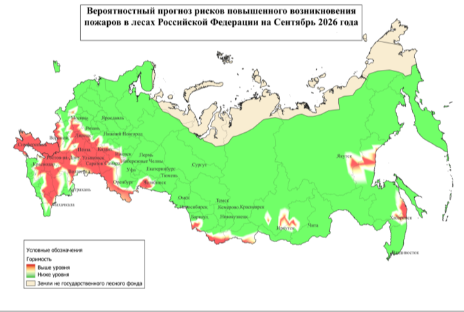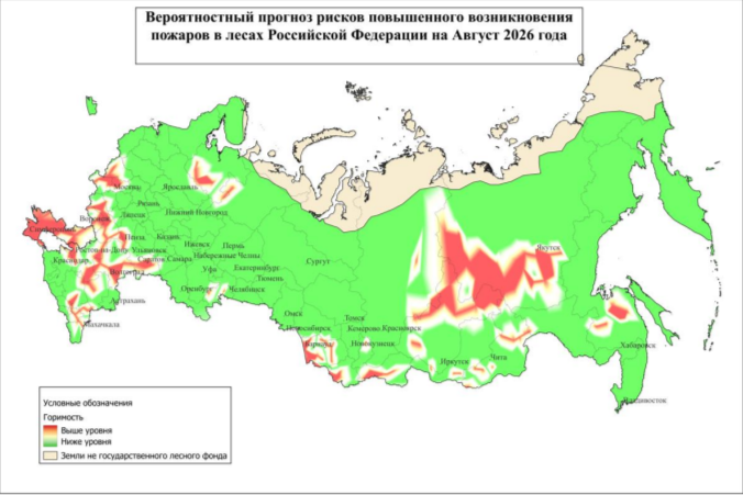 Федеральной Авиалесоохраной разработан долгосрочный прогноз повышенных рисков возникновения лесных пожаров в зависимости от условий погоды на апрель-октябрь 2026 года. Прогноз составлен исходя из данных Росгидромета. Он корректируется каждый месяц.