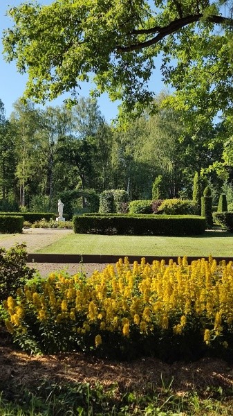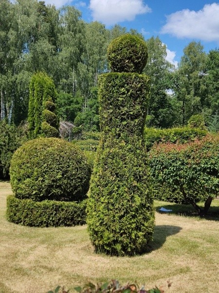 На небольшом, но ухоженном пространстве гордо возвышаются и спирали, и шары, и арки. Приглядевшись, можно увидеть избушку на курьих ножках и горделивого глухаря. Все это – результат кропотливой многолетней работы энтузиастов, трудящихся здесь.
