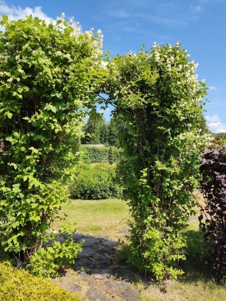 В топиарии Ботанического сада растут липа, калина, туя, пузыреплодник, клён гиннала, чубушник, и даже сосна с тисом.