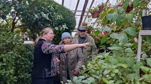 Они благополучно проросли, и дерево процветает даже спустя 85 лет. В честь 121 года со дня рождения Алимбека ботсад посетил его сын Бари Бариевич с супругой, возложил цветы к барельефу отца и принял участие в экскурсии по оранжерее.