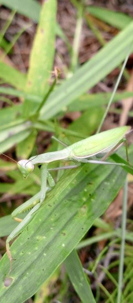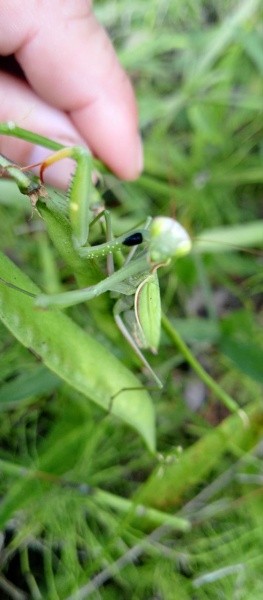 Пугаться не нужно: речь идет о безопасном для человека богомоле. Он не повредит и урожаю, поскольку питается другими насекомыми, включая вредителей.