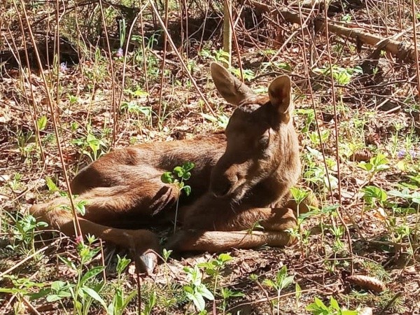 Молодые лосята в наших краях обычно рождаются между двумя майскими праздниками. У молодых самок бывает один лосёнок, а у взрослых может появиться сразу двое малышей.