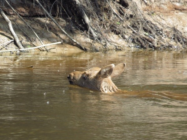 «Один раз чуть не наступил на лежащего детеныша, перешагивая упавший ствол дерева. Другой раз пришлось убегать от агрессивной лосихи, спасаясь от неё на байдарке посреди старицы Большой Кокшаги. Третий раз пришлось возвращать переплывшего реку лосенка на другой берег, где его ждала мама лосиха», – поделился воспоминаниями эколог.