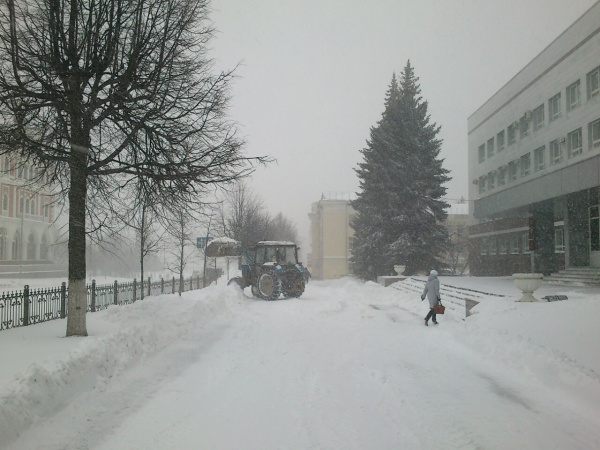 Обильный снегопад начался около полуночи, и пока не прекращается. На работы по очистке от снега дорог и тротуаров вышла вся имеющаяся техника – 47 единиц спецтехники МУП «Город» и 8 единиц спецтехники «МП «Сигнал». Работа будет продолжаться круглосуточно. Предприятия и организации занимаются очисткой подведомственных территорий.