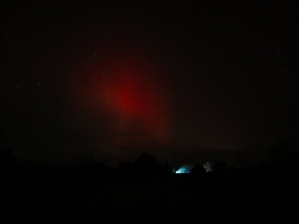 "По сравнению с предыдущими сияниями это было достаточно сильным, и можно было видеть невооружённым взглядом красное переливающееся небо с множеством световых столбов разного размера", — говорит Евгений.