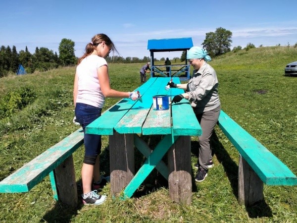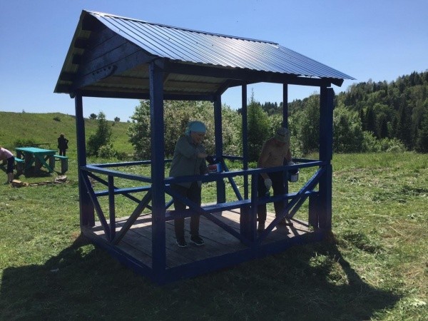 На уборку с метелками, кистями и краской вышли волонтеры старшего возраста - сотрудники Коркатовского дома культуры, местной администрации, сельской библиотеки, а также работники Моркинской районной администрации. Они покрасили свежей краской беседку и скамейки, на которых могут отдохнуть путешественники, приезжающие осмотреть памятник природы Карман Курык.