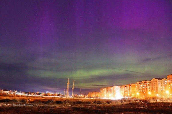 Обычно в городских условиях сияние из-за уличного освещения заметить трудно. Но вчера природное явление было таким мощным, что даже свет фонарей не смог помешать запечатлеть красоту.