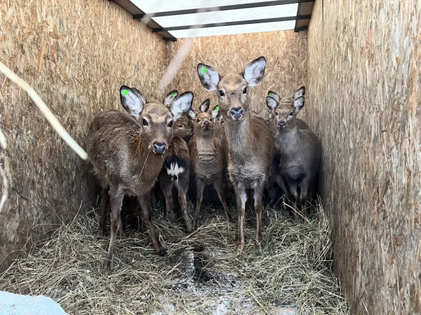 Среди новых жителей охотничьего хозяйства прибавление, притом не только молодняк ‒ есть олени от одного до трех лет, есть и постарше, лет пяти. Чуть больше сотни питомцев сейчас осваивают территорию в 108 га: хоть и полувольные условия, но зато места хватает: и леса, и ручьи, и поля!