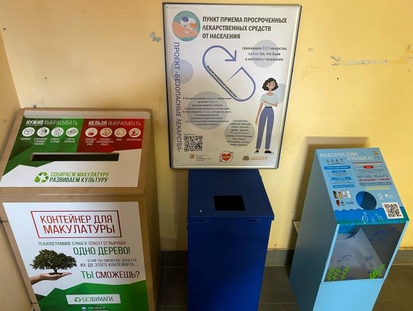 появился контейнер для макулатуры в рамках проекта #БезБумаги. Можно приносить картонные коробки, бумажную упаковку, рекламу, обычную бумагу, тетради, газеты и журналы. При этом волонтеры просят не сдавать упаковки из-под сока и еды, упаковки из-под масла, обои и фотографии. Вся собранная макулатура отправляется на переработку, а вырученные средства идут на закупку мальков рыбы;