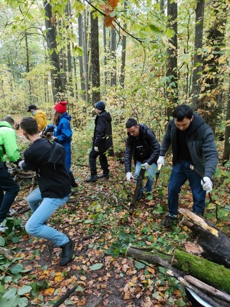 К экологической акции примкнули студенты Волгатеха, сотрудники и студенты "iSpring", работники управляющей компании "Заводская", представители мэрии и другие активные горожане. Взяв в руки бензопилы, они распиливали упавшие деревья и сухие ветки. На помощь волонтерам пришла техника муниципального предприятия "Город" и компании "iSpring". Всего по итогам субботника из Сосновой рощи было вывезено четыре машины валежника.