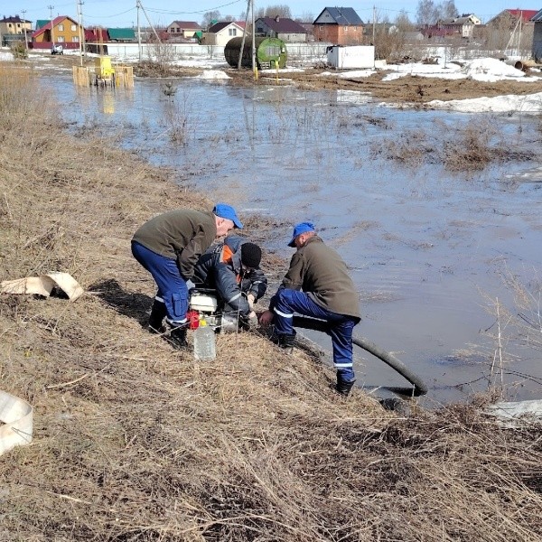 Спасатели установили помпу для перекачки воды с участка прибрежной территории в реку.